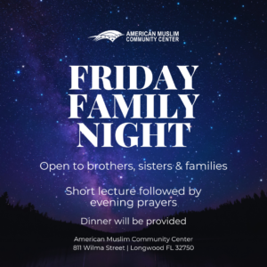 FRIDAY – Family Night occurs every Friday with a short halaqa and dinner for families to get together as a community.